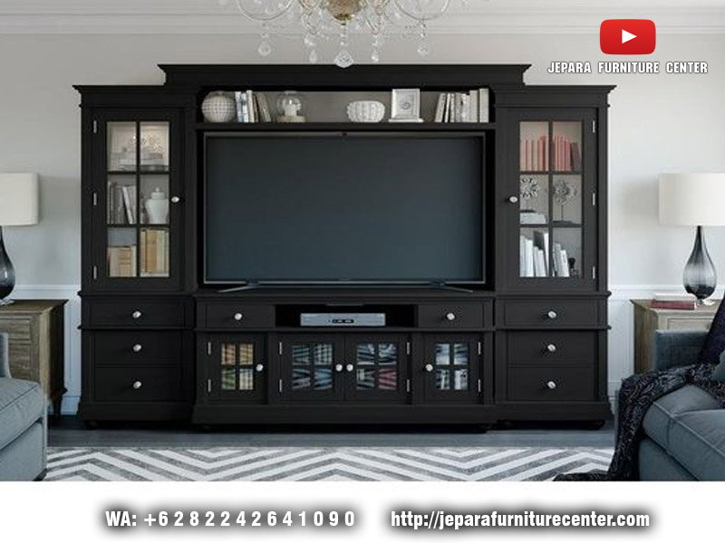 Set Lemari TV Minimalis Salah satu model Lemari TV Minimalis JATI Terbaru Tahun 2024 yang mempunyai desain Elegand dan modern, Lemari TV dari Kayu Jati Jepara ruang tamu ini mempunyai ukuran yang tidak lumayan besar tentunya sedikit memakan ruangan tapi tidak dipermasalahkan karena bisa disesuaikan dengan keiinginan anda dan ukuran ruang tamu anda. Lemari TV ini mempunyai pintu kaca yang tentu salah satu ciri khas dari Lemari TV Minimalis atau Lemari pajangan Minimalis.